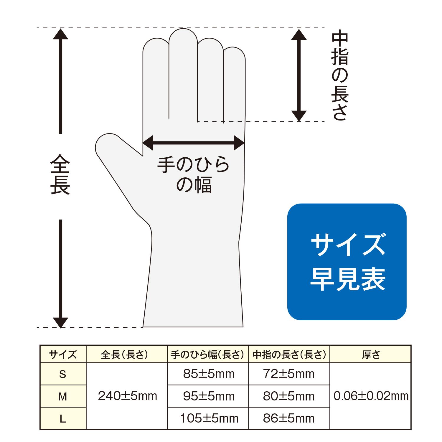 Lサイズ、全長240±5mm 手の平の幅 105±5mm