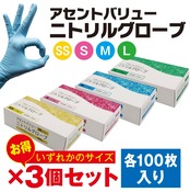 6箱セット ニトリル手袋(パウダーフリー)アセントバリュー SSサイズ Sサイズ Mサイズ Lサイズ ニトリル手袋 600枚 食品衛生法適合 使い捨て 介護用 医療用 業務用